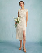 Belltoile Kayısı Saten Kap Kol Kılıf Yırtmaçlı Midi Elbise