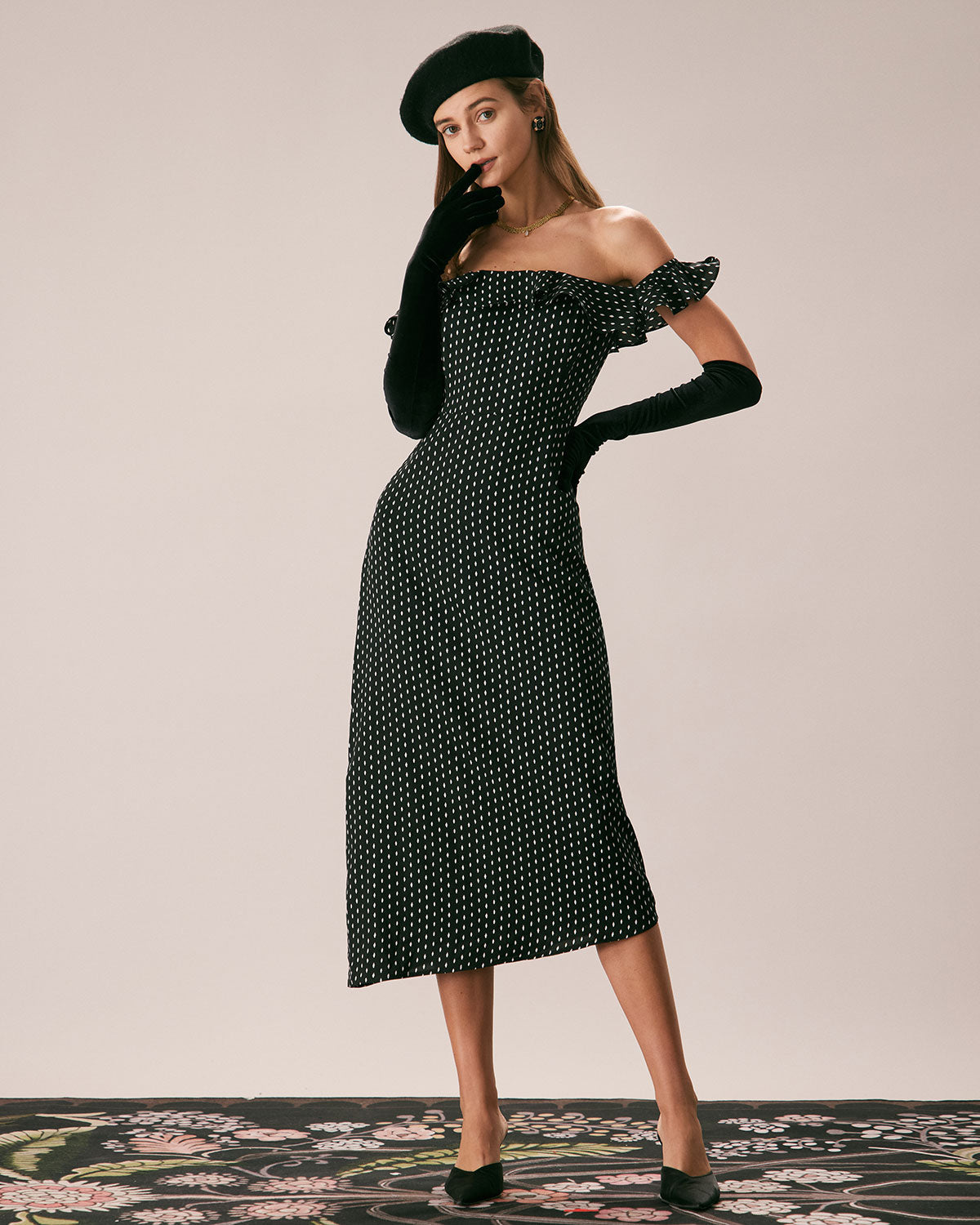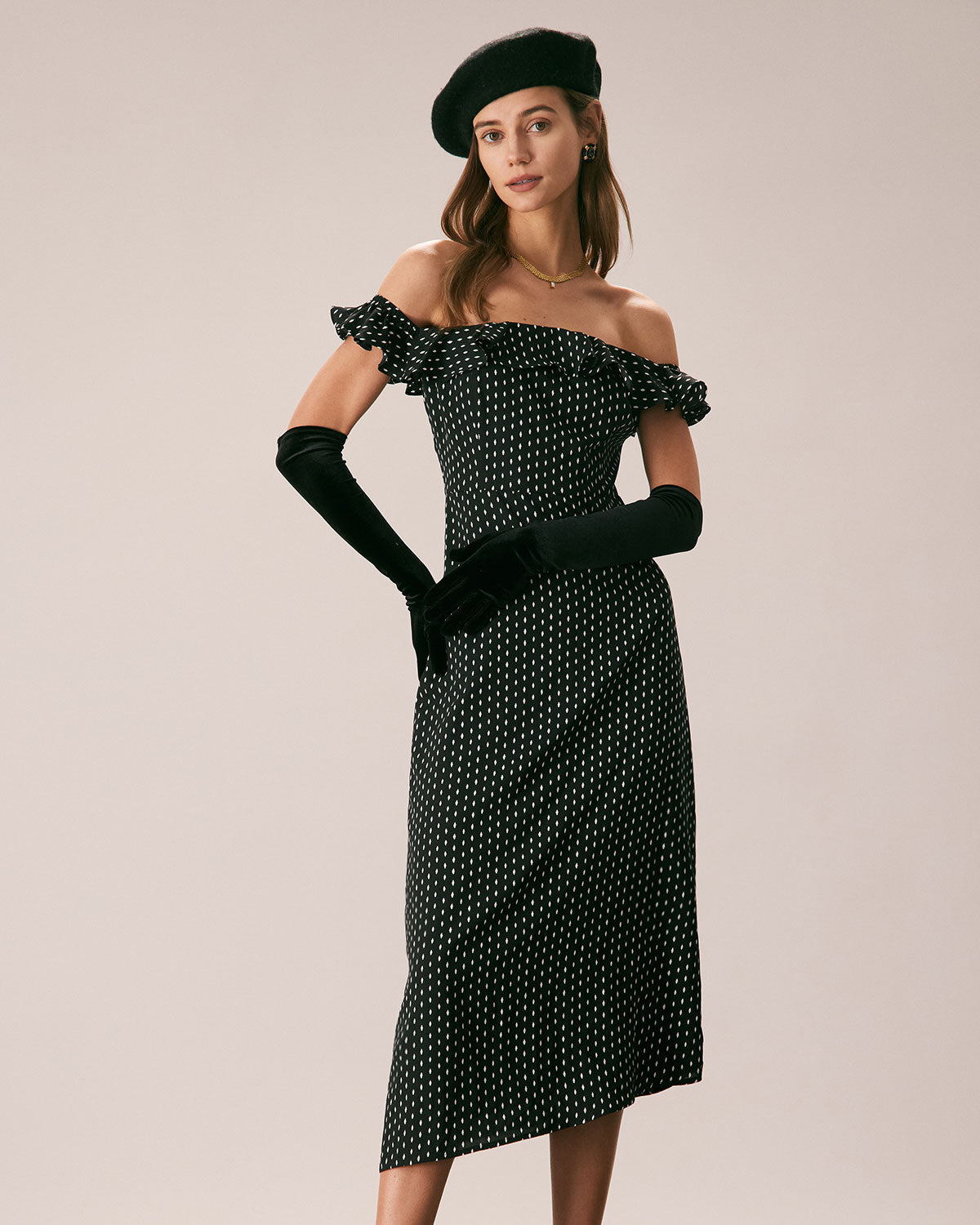 Belltoile™ Siyah Omuzları Açık Fırfırlı Midi Elbise