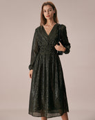 Belltoile™ Siyah V Yaka Büzgülü Üst Üste Gelen Midi Elbise