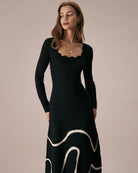 Belltoile™ Siyah Dalgalı Taraklı Kazak Midi Elbise