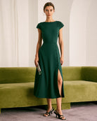 Belltoile Yeşil Kayık Yaka Sırtı Dekolteli Midi Elbise