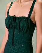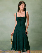 Belltoile™ Yeşil Kare Yaka Jakarlı Yırtmaçlı Midi Elbise