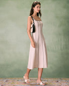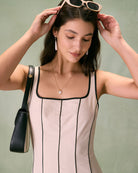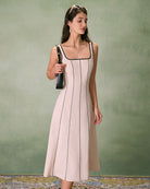 Belltoile™ Haki Kare Yaka Kontrast Midi Elbise