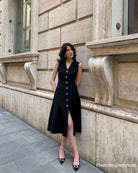 Belltoile Siyah V Yaka Tunik Midi Elbise