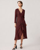 Belltoile™ Kırmızı V Yaka Yırtmaçlı Uzun Kollu Midi Elbise