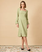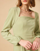 Belltoile™ Katı Kare Yaka Uzun Kollu Elbise