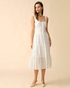 Belltoile™ Kare Yaka Katlı Etek Midi Elbise
