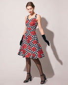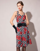 Belltoile™ Kalp Yaka Puantiyeli Gül Boyundan Bağlamalı Midi Elbise