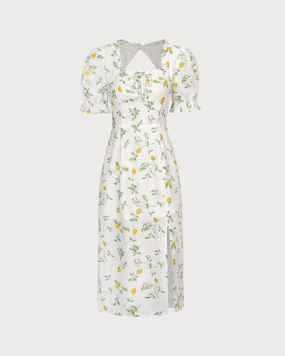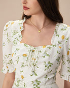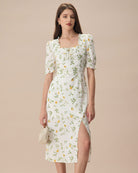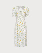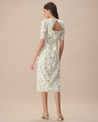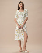 Belltoile™ Beyaz Kare Yaka Fırfırlı Çiçekli Midi Elbise