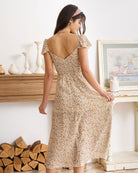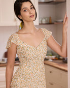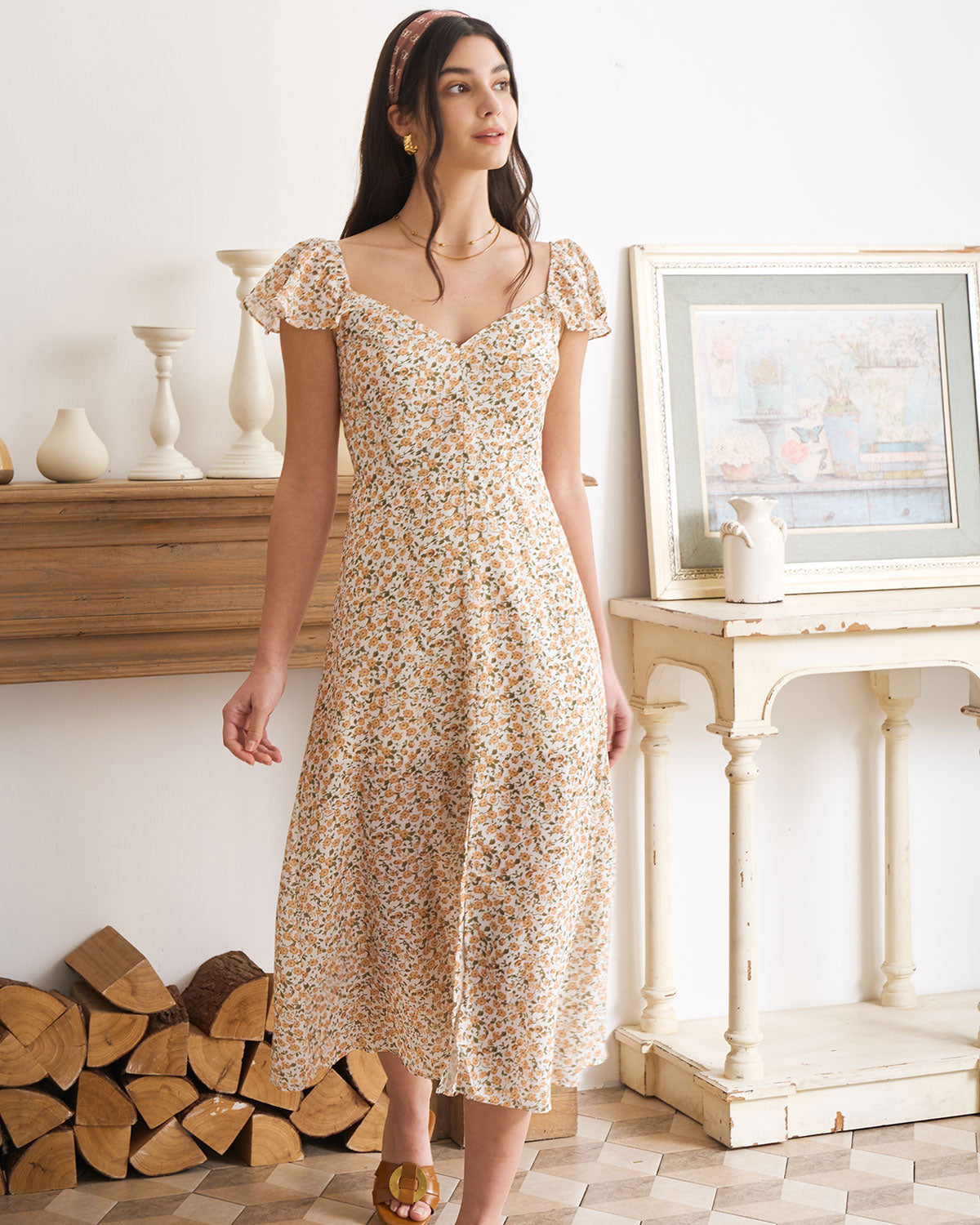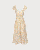 Belltoile™ Sarı V Yaka Çiçek Yırtmaçlı Midi Elbise