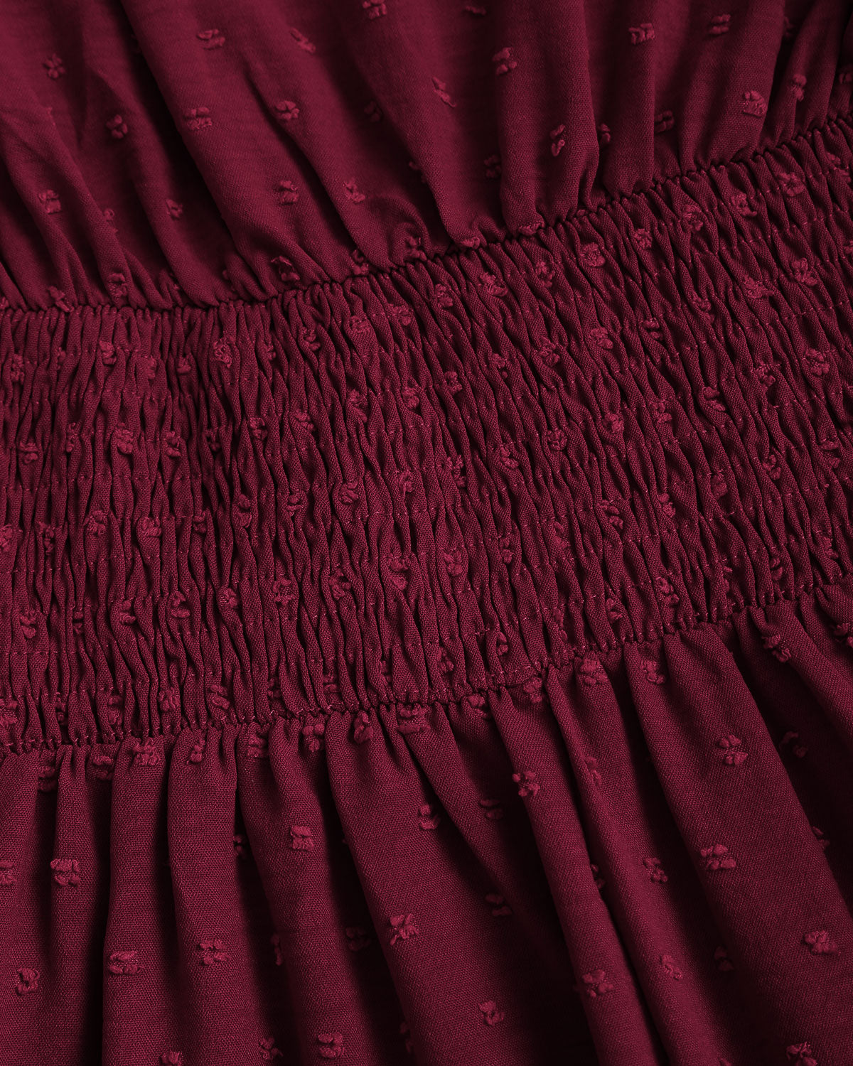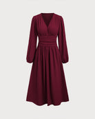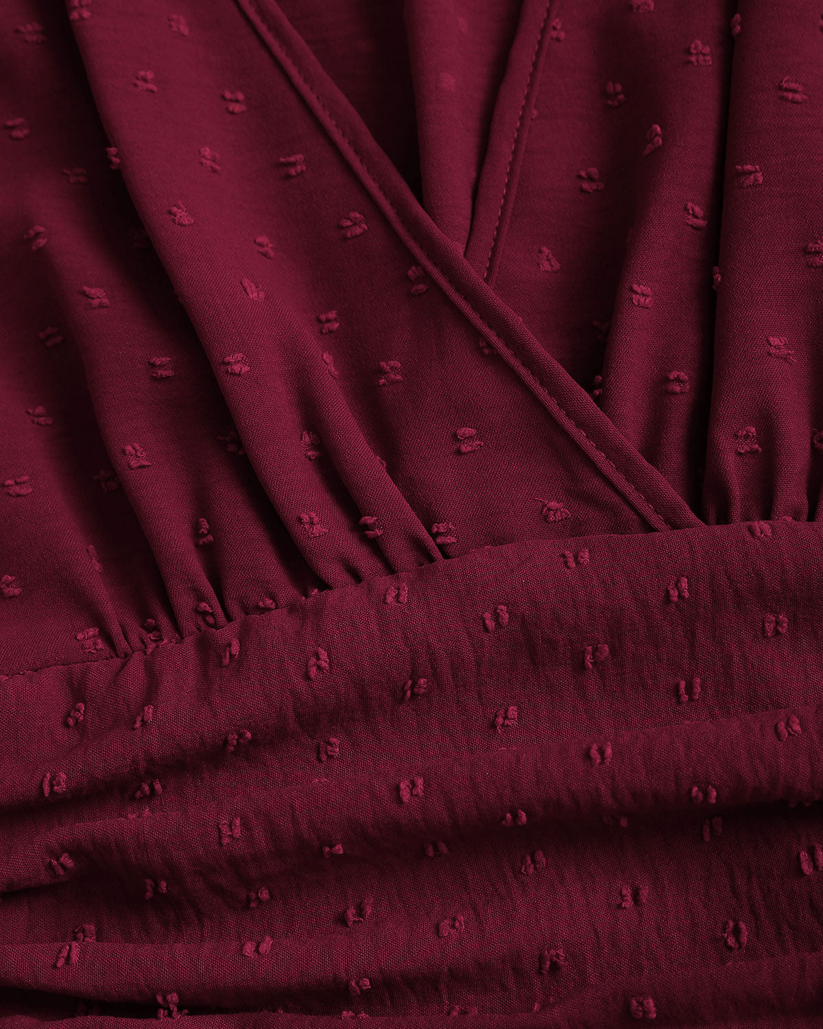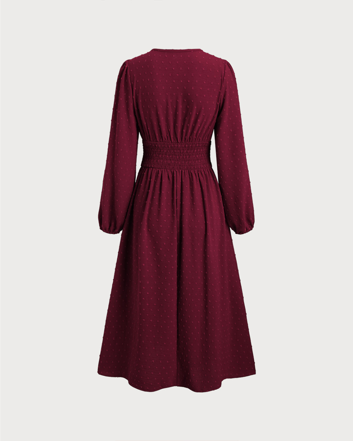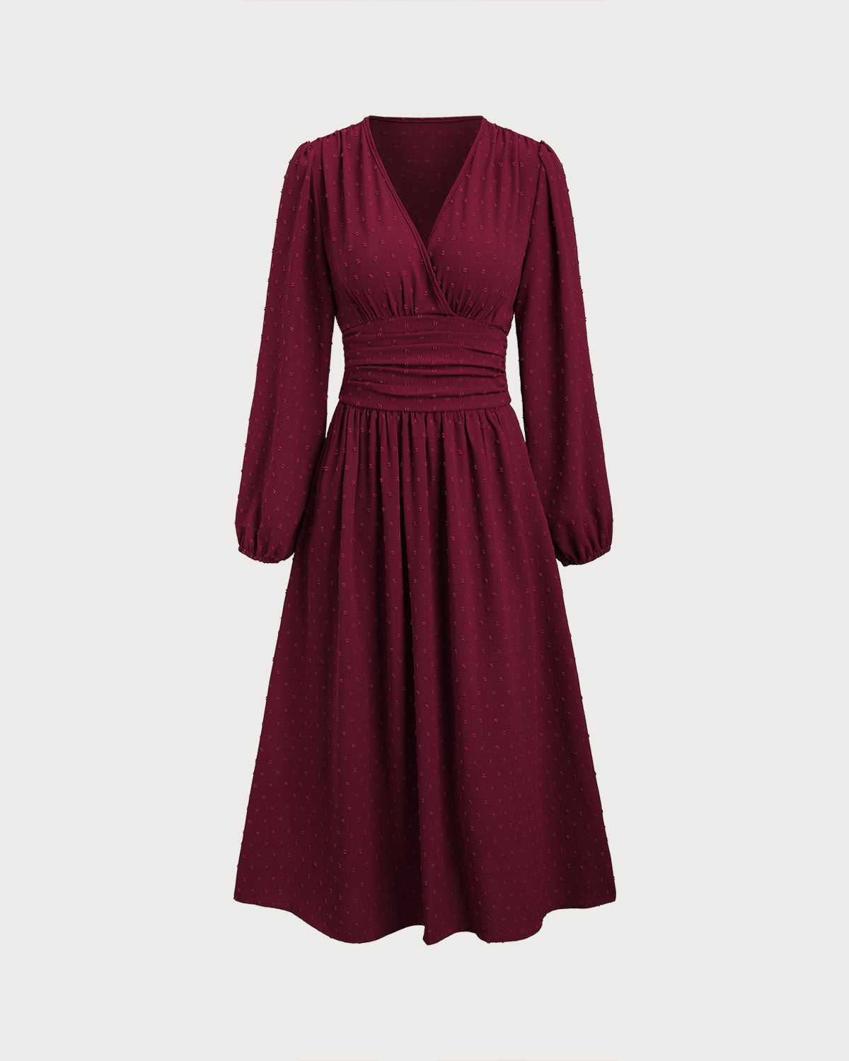 Şarap Kırmızısı Puantiyeli Büzgülü Midi Elbise