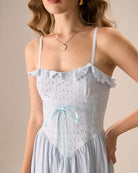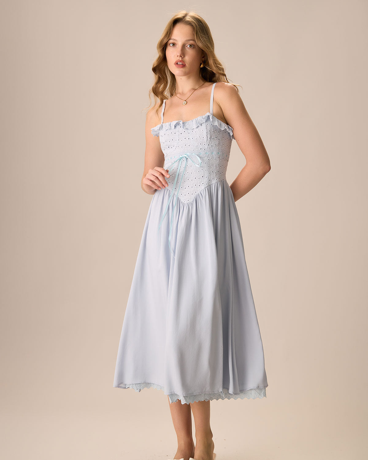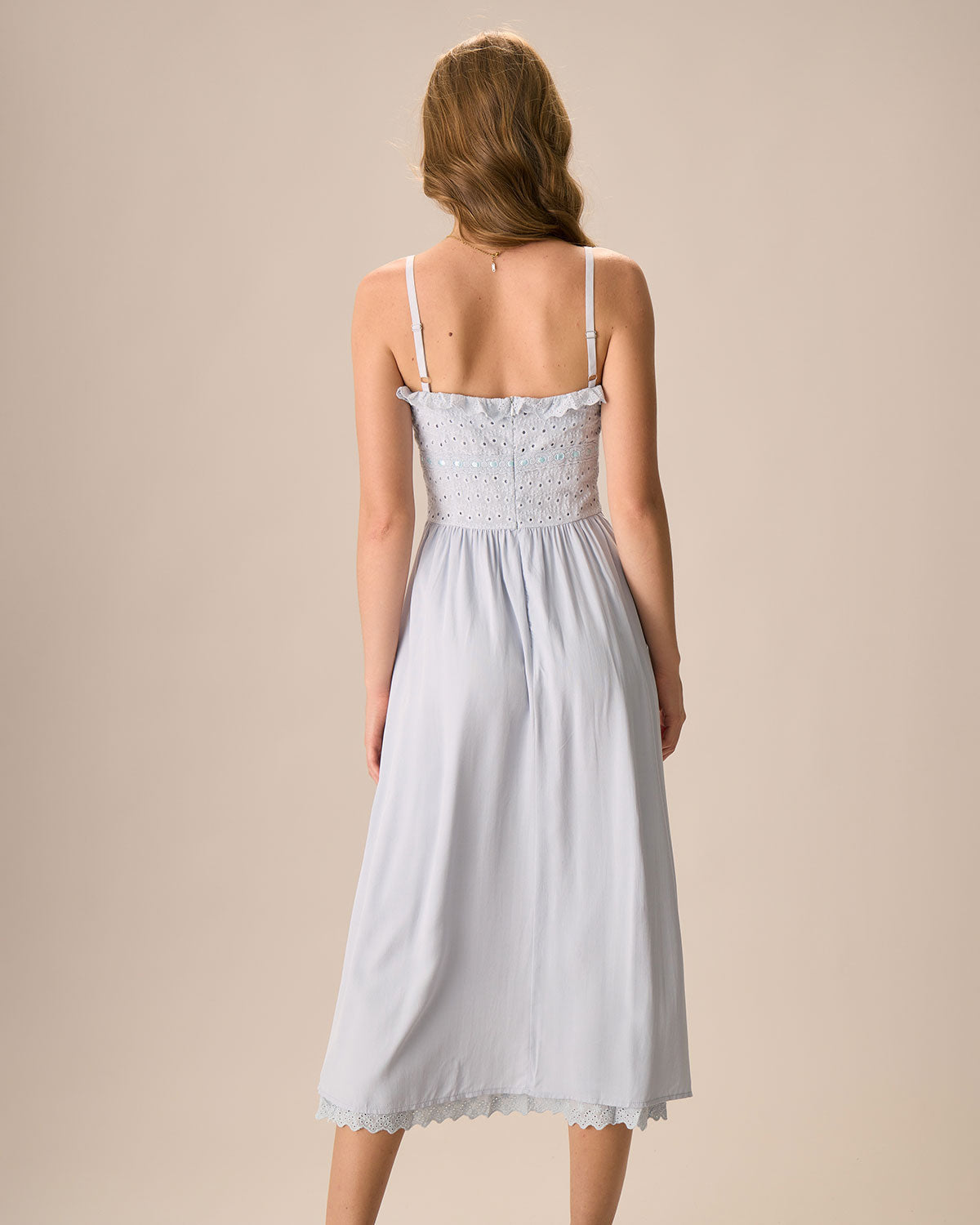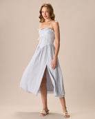Belltoile™ Kadın Mavi Nakışlı Pamuklu Slip Midi Elbise