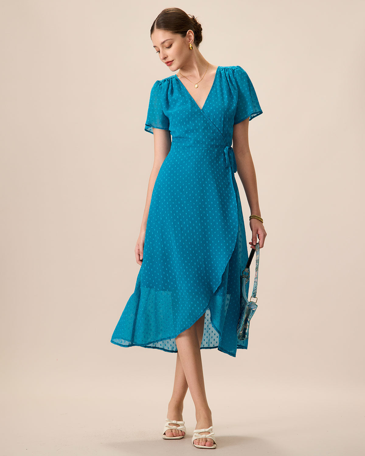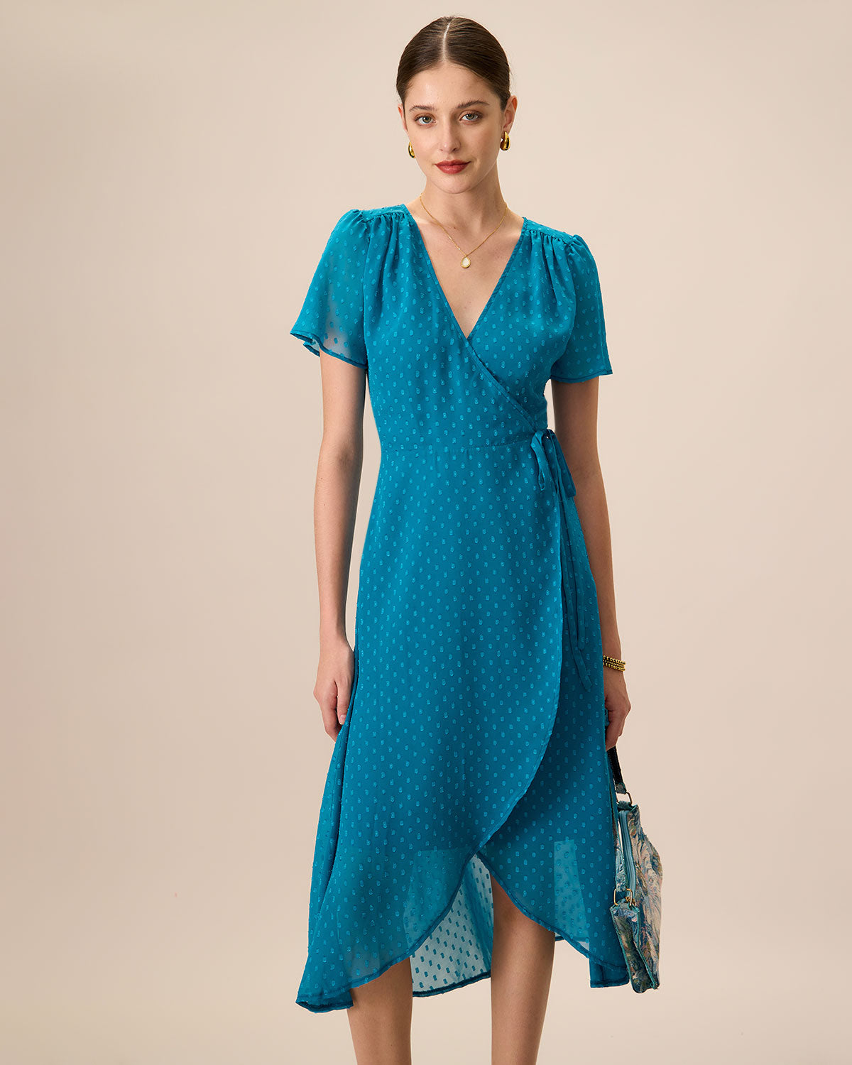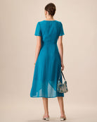 Belltoile Kadın Mavi V Yaka Anvelop Midi Elbise