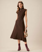 Belltoile™ Kadın Kahve Bodycon Çift Taraflı Triko Elbise