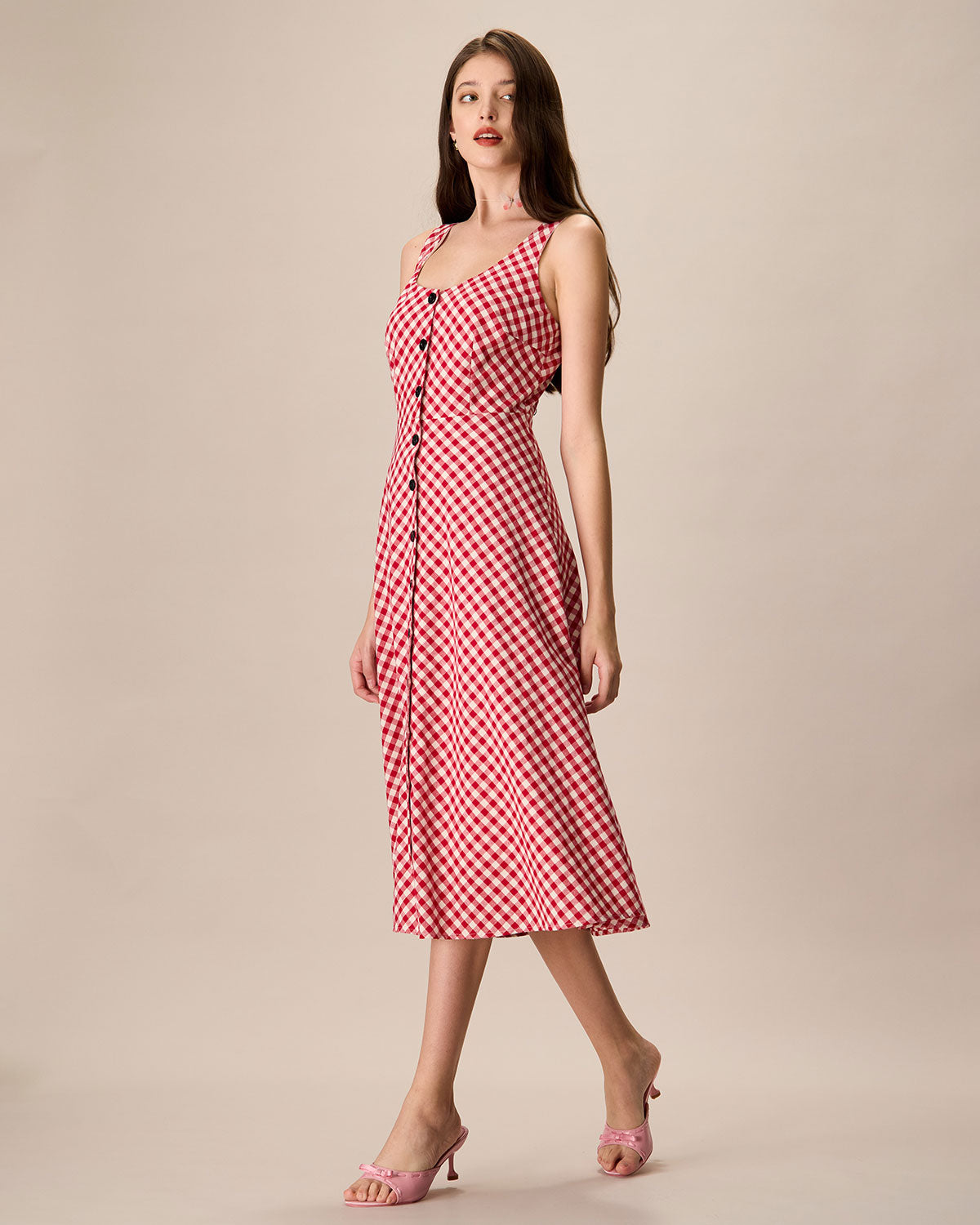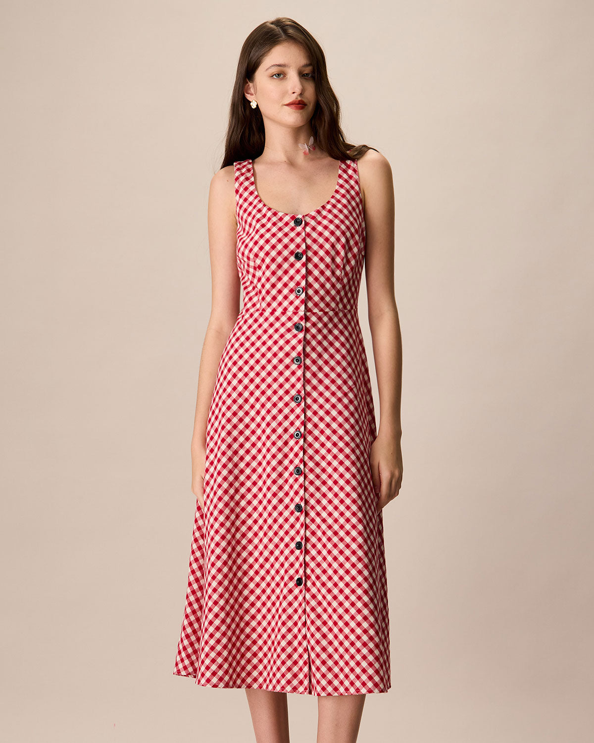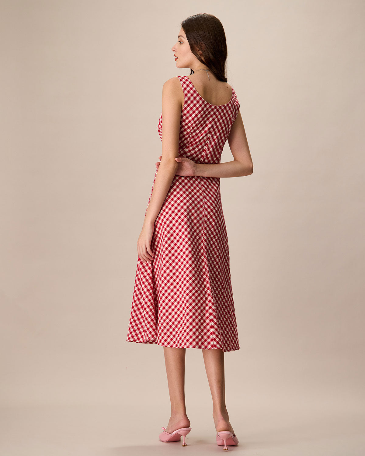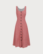 Belltoile Kadın Kırmızı U Yaka Ekose Midi Elbise