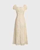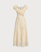 Belltoile Sarı Çiçekli Kap Kol Fırfırlı Midi Elbise