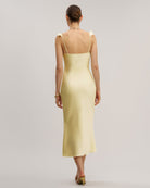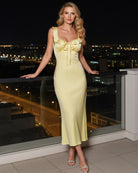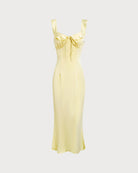 Sarı V Yaka Volanlı Denizkızı Midi Elbise