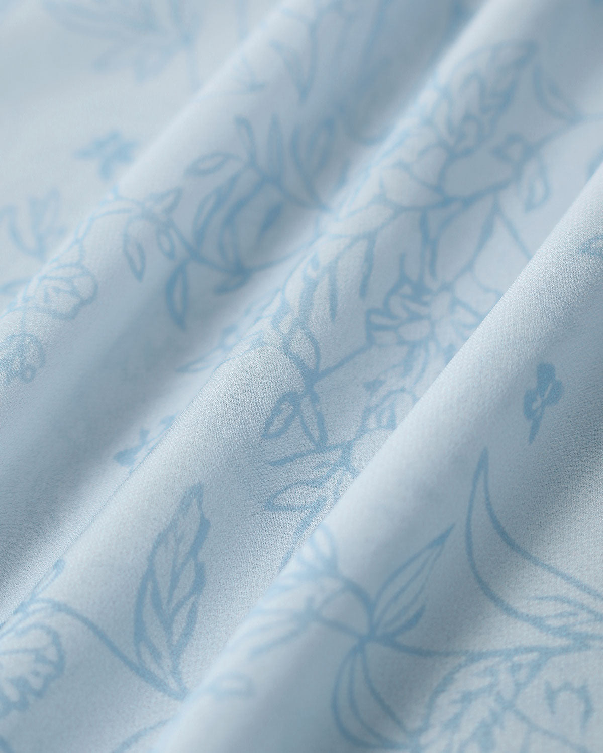 Mavi V Yaka Düğmeli Pileli Midi Elbise