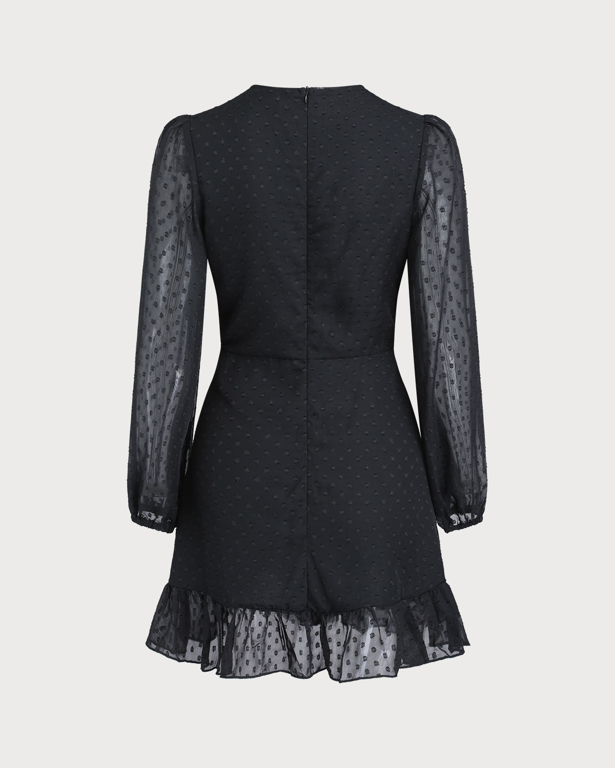 Siyah Puantiyeli Şeffaf Kollu Mini Elbise
