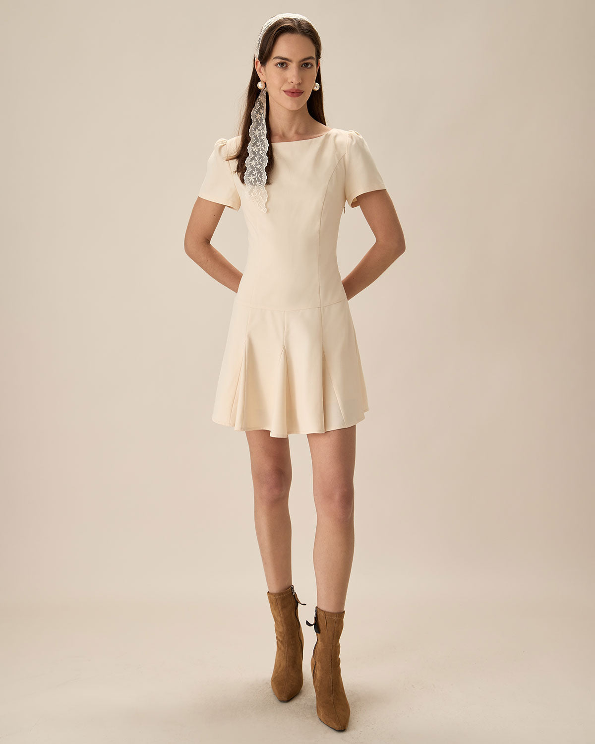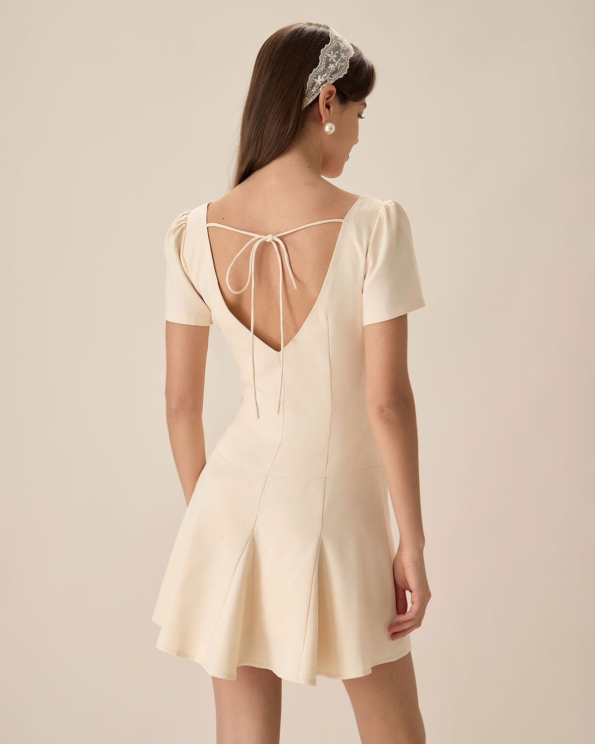 Belltoile™ Kayısı Kayık Yaka Sırtı Açık Mini Elbise
