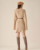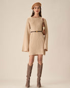 Belltoile™ Bej Damla Omuz Triko Mini Elbise
