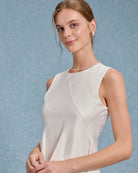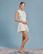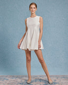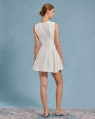 Bej Yuvarlak Yaka Kolsuz Mini Elbise