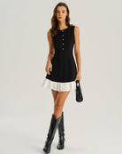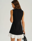Siyah Kontrast A Kesim Kolsuz Mini Elbise