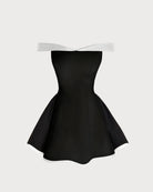 Siyah Kontrast Straplez A Kesim Mini Elbise