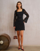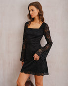 Siyah Dantel Çan Kollu A Kesim Mini Elbise