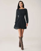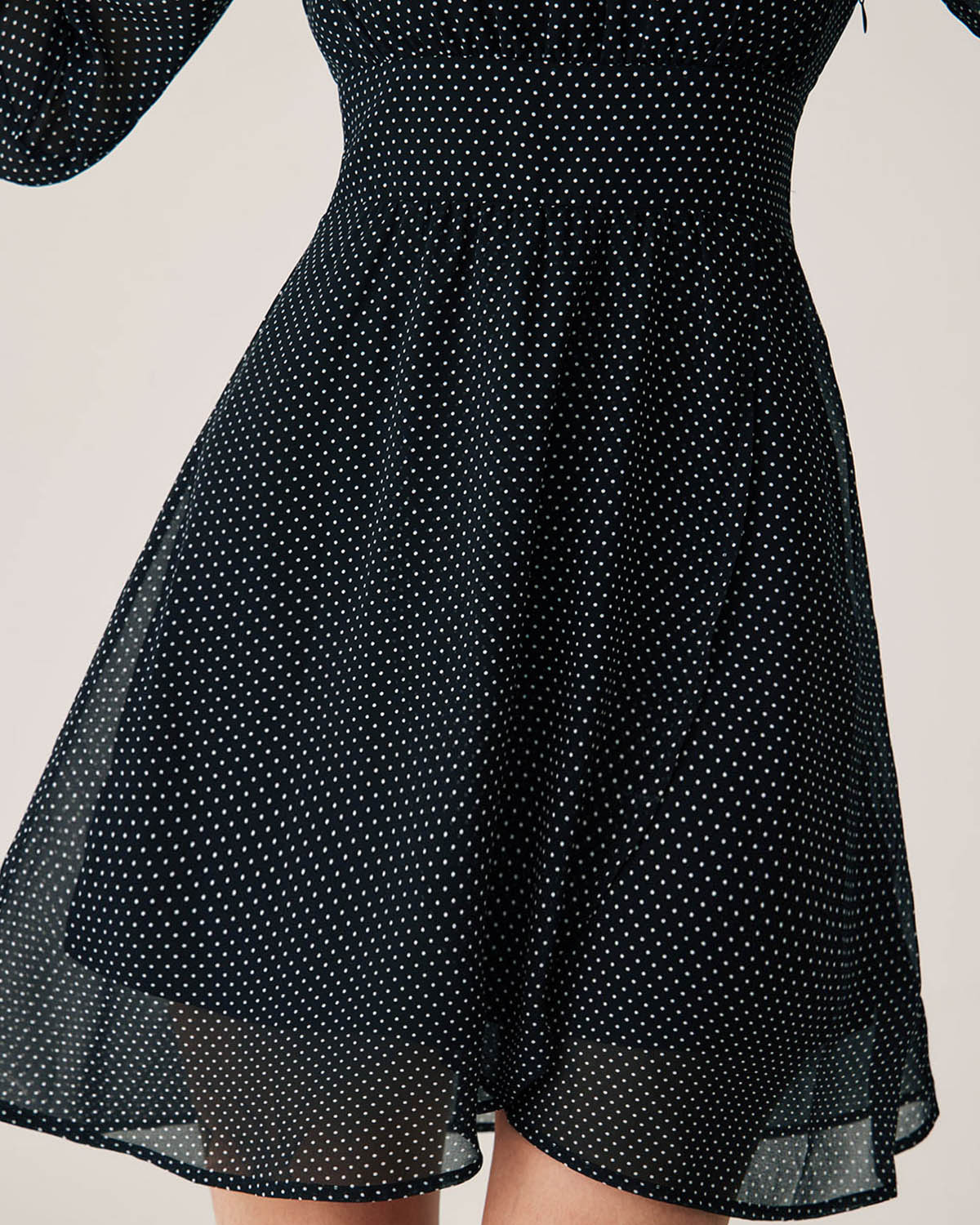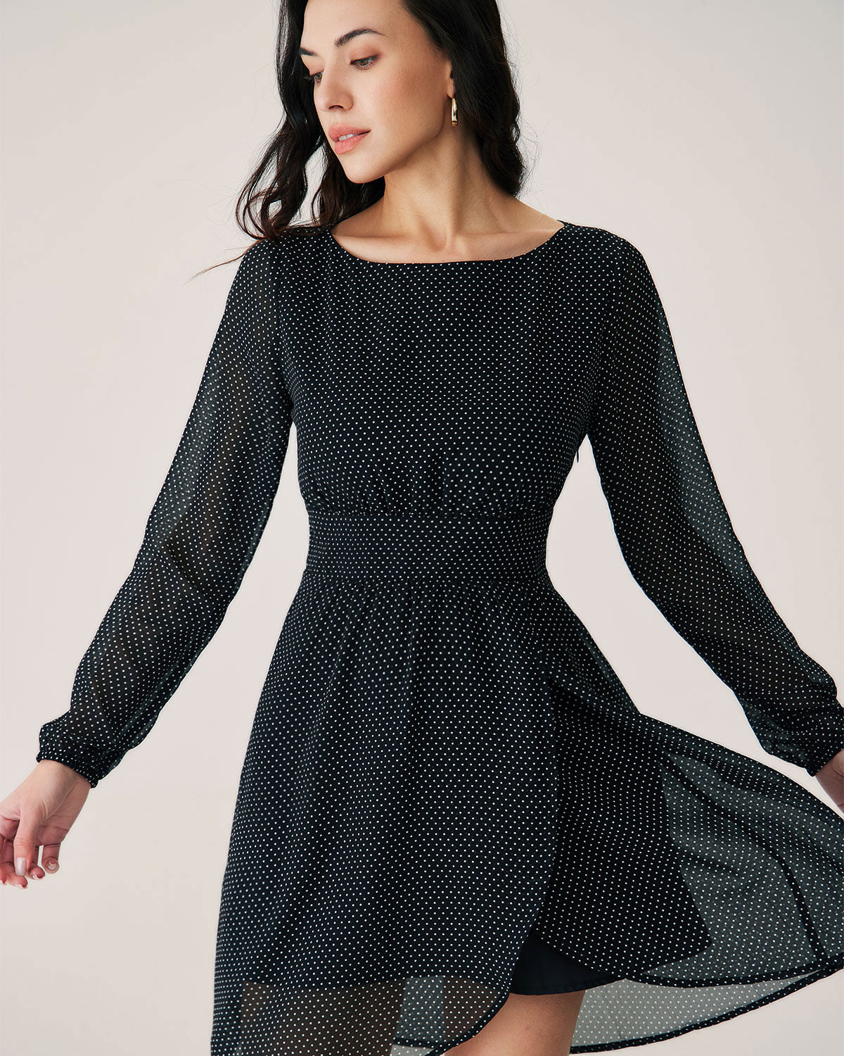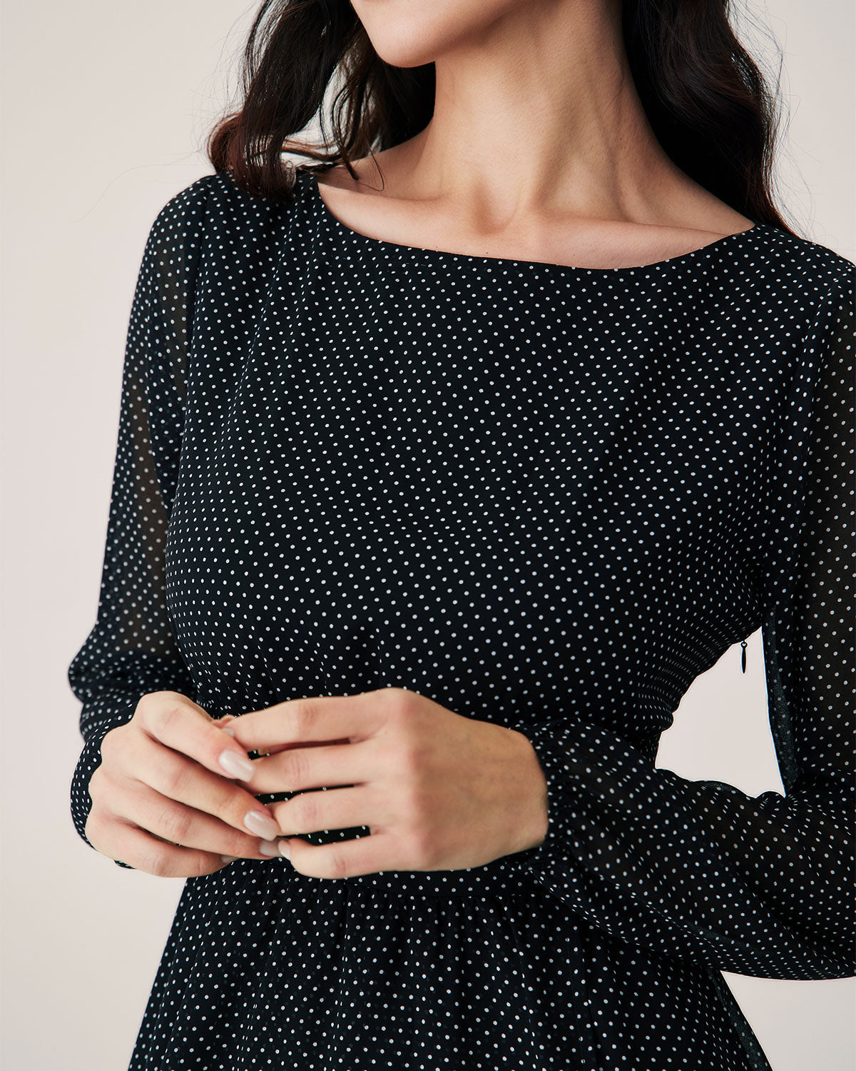 Belltoile™ Siyah Puantiyeli Kayık Yaka Mini Elbise