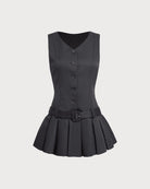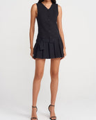 Siyah V Yaka Kolsuz Kemerli Mini Elbise