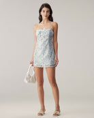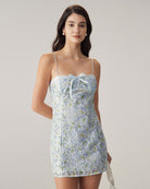 Belltoile™ Mavi Çiçekli Dantel Slip Mini Elbise