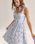 Belltoile™ Mavi Çiçekli Kare Yaka Slip Mini Elbise