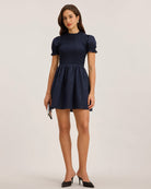 Mavi Büzgülü Kabarık Kollu Mini Elbise