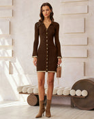 Kahverengi Vücuda Oturan Düğmeli Kazak Elbise