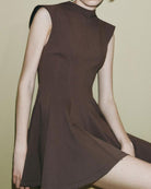 Kahverengi Kolsuz A Kesim Mini Elbise