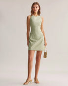 Gösterişli tekne yaka ve kolsuz kesimiyle tasarlanan bu elbise, sıcak havalar için mükemmel, ferah ve modern bir görünüm sunar. Canlı yeşil rengi cesur bir dokunuş katarken, mini boyu onu eğlenceli ve canlı tutar.