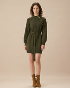 Belltoile™ Yeşil Fener Kol Kazak Mini Elbise