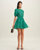 Yeşil Büzgülü Lastikli Bel Mini Elbise