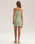 Şık kare yakası ve hoş bir slip tasarımıyla bu mini elbise, gündüz veya gece için mükemmel, şık ve minimalist bir görünüm sunar. Yumuşak ve hafif kumaşı güzelce dökülürken, cesur yeşil tonu gardırobunuza renk katar.