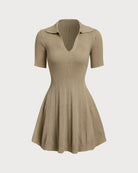 Belltoile™ Haki A Kesim Pileli Triko Mini Elbise
