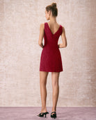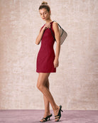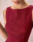 Kırmızı Tekne Yaka A Kesim Kolsuz Mini Elbise
