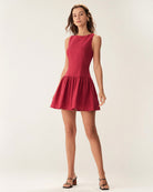 Belltoile™ Kırmızı Kayık Yaka Kolsuz Mini Elbise