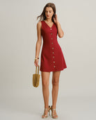 Kırmızı V Yaka Kolsuz Mini Elbise