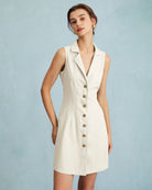 Belltoile™ Bej Yakası Düğmeli Kolsuz Mini Elbise