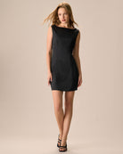 Belltoile™ Siyah Kayık Yaka Fiyonklu Saten Mini Elbise