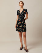 Belltoile Siyah V Yaka Çiçekli Düğmeli Mini Elbise
