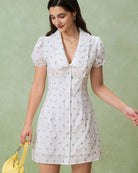 Narin çiçek baskılarıyla süslenmiş yumuşak beyaz bir tabana sahip bu mini elbise, bahar gezileri, bahçe partileri veya gündelik gündüz etkinlikleri için mükemmeldir. Hoş silüeti, kabarık kolları ve ince fırfır detayları romantik ve kadınsı bir görünüm yaratır. Hafif, nefes alabilen kumaştan üretilen bu elbise, hem rahatlık hem de şık bir görünüm sunar.