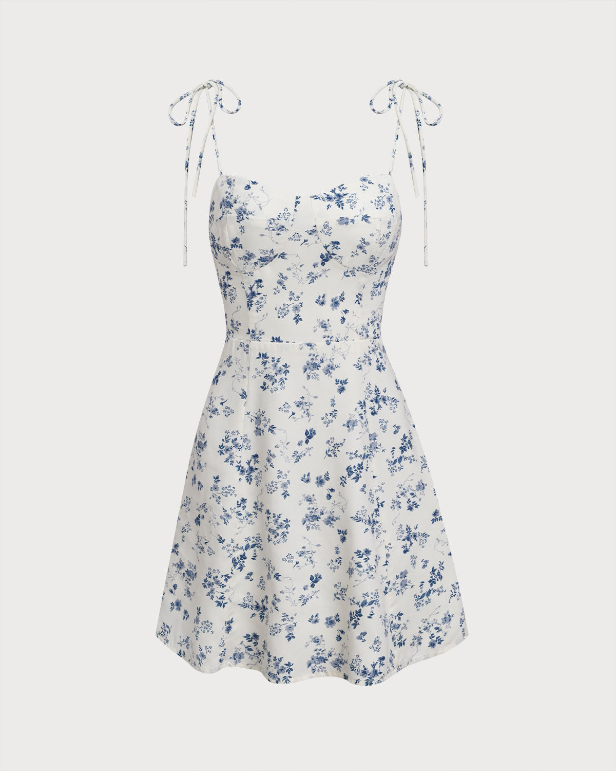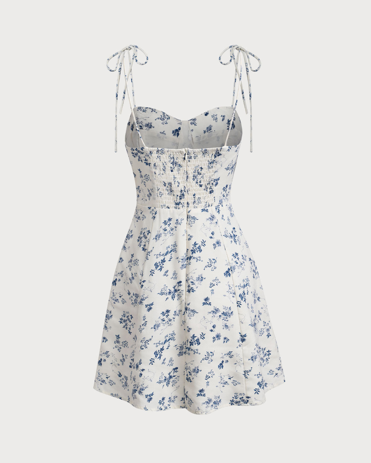 Belltoile™ Beyaz Çiçekli Büzgülü Kravat Askılı Mini Elbise