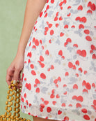 Beyaz Çiçekli V Yakalı Volanlı Mini Elbise